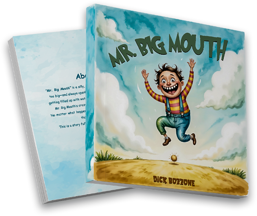 “Mr. Big Mouth” is a silly, laugh-out-loud story about a man whose mouth is just too big-and always open! From winning a talking contest to floating into space, getting filled up with water, and even jumping out of a plane without a parachute,